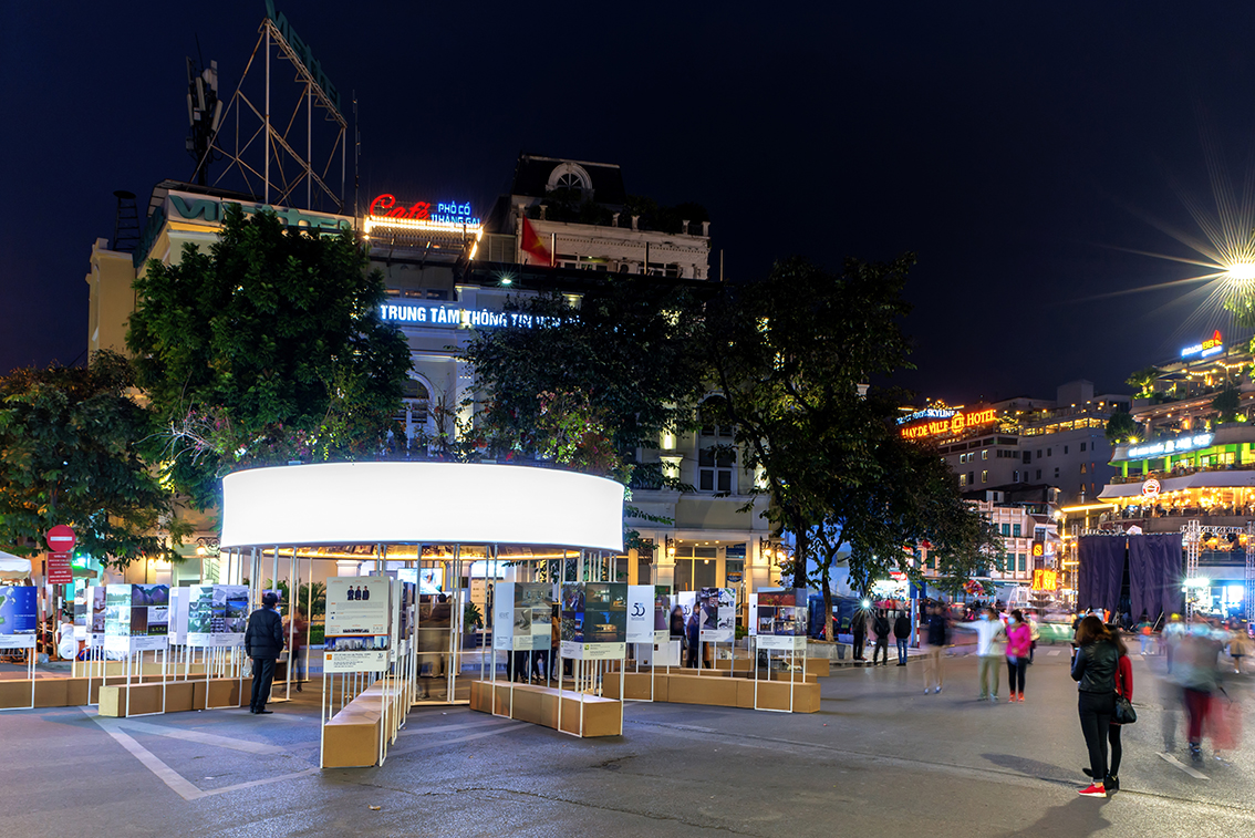 Pavilion triển lãm kiến trúc tại Hà Nội.Đây là công trình được thiết kế cho sự kiện kỉ niệm 50 năm khoa Kiến trúc và Quy hoạch trường ĐHXD và được triển lãm tại không gian phố đi bộ Hồ Hoàn Kiếm.